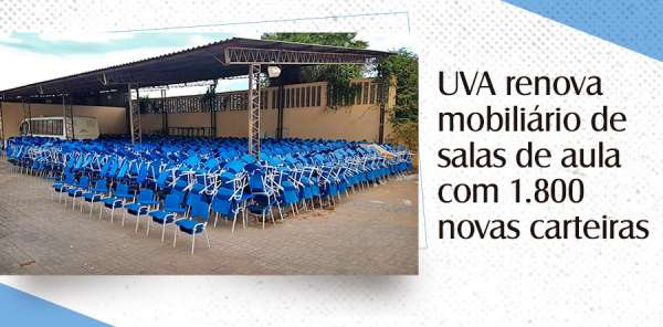 A Universidade Estadual Vale do Acaraú (UVA) adquiriu 1.800 novas carteiras para a renovação do mobiliário utilizado em salas de aula em seus quatro campi. A aquisição, feita com recursos do Tesouro Estadual, no valor de R$396.000,00, foi aprovada pelo Governador Camilo Santana, em março de 2019, pelo Projeto de Reestruturação de Mobiliário da UVA, encaminhado pela Reitoria, referente ao Monitoramento de Ações e Projetos Prioritários do Governo do Estado (MAPP 101).