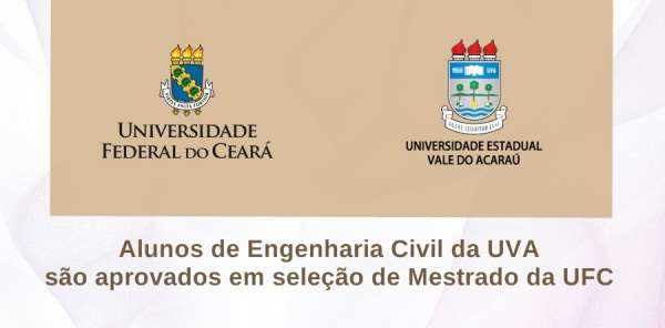 Cinco alunos egressos do Curso de Engenharia Civil da Universidade Estadual Vale do Acaraú (UVA) foram aprovados em processo seletivo 2020.1 do Programa de Mestrado Acadêmico em Engenharia Civil da Universidade Federal do Ceará (UFC). O Programa do Centro de Tecnologia da UFC tem conceito 7 da CAPES e o resultado final da seleção foi divulgado em 22 de dezembro de 2019.
