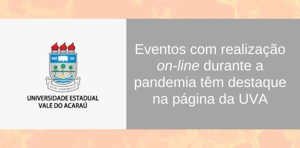 Os eventos realizados pela Universidade Estadual Vale do Acaraú (UVA), ou em colaboração com outras Instituições, estão sendo divulgados no sítio eletrônico da UVA em uma única seção, que concentra todos os eventos, que vão desde palestras na forma de lives e semanas acadêmicas de cursos, a ciclos de debates e cursos livres, com duração maior. O acesso pode ser feito na seção “Serviços”, opção “Eventos On-line”, ou clicando no banner “Participe de Eventos On-line”.