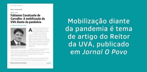 Em artigo intitulado “A mobilização da UVA diante da pandemia”, publicado na edição de 11 de junho de 2020 do Jornal O Povo, o Reitor da Universidade Estadual Vale do Acaraú, Fabianno Cavalcante de Carvalho, fala sobre como a UVA tem enfrentado a crise provocada pela pandemia do novo coronavírus e a decisão de manter a Universidade mobilizada.