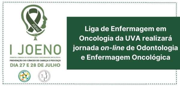 A Liga de Enfermagem em Oncologia (LEON) da Universidade Estadual Vale do Acaraú (UVA) realizará, nos dias 27 e 28 de julho de 2020, a I Jornada de Odontologia e Enfermagem Oncológica (I JOENO), tendo como tema central a prevenção do câncer de cabeça e pescoço. O evento on-line será realizado em parceria com a Liga Acadêmica em Traumatologia e Cirurgia Buco-Maxilo-Facial (LABUMAX) da Faculdade de Odontologia Paulo Picanço (FACPP), com inscrições gratuitas, que podem ser feitas em eventos.uvanet.br ou pelo link disponível no Instagram das duas ligas: @leonuva e @labumax.