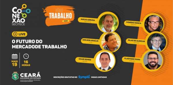 Na live desta quarta-feira, 19 de maio de 2021, às 16h, o Projeto “Conexão SECITECE – Todos Ligados na Ciência” terá como tema “O Futuro do Mercado de Trabalho” e debaterá as transformação das relações empregador e empregado; o home office e a inclusão de ferramentas tecnológicas no universo do trabalho. As inscrições já estão abertas no Sympla, acessando AQUI.