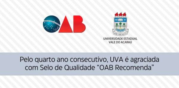 A UVA foi a única instituição de ensino de Sobral já agraciada com o Selo OAB Recomenda, tendo sido premiada pela quarta vez consecutiva. De acordo com o coordenador do Curso de Direito, Clito Carneiro, o Selo de Qualidade da OAB é muito significativo para a UVA. “Nos últimos anos temos buscado implementar uma metodologia ativa no ensino jurídico e estamos no caminho certo graças à qualidade dos nossos alunos e à qualificação dos nossos professores, todos comprometidos com a instituição. O reconhecimento da OAB indica que formamos profissionais éticos, capazes de estarem no mercado, comprometidos com as causas sociais, o que nos enche de orgulho e alegria”, avalia o professor.
