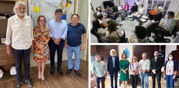 No dia 26/05, a reitora Izabelle Mont’Alverne, juntamente com os reitores da Universidade Estadual do Ceará (Uece), Hidelbrando de Soares, e da Universidade Regional do Cariri (Urca), Francisco do Ó Lima Júnior, participou de reunião com o secretário da Ciência, Tecnologia e Educação Superior, Carlos Décimo, e com o presidente da Fundação Cearense de Apoio ao Desenvolvimento Científico e Tecnológico (Funcap), Tarcísio Pequeno. O objetivo foi consolidar e fortalecer a política de expansão, interiorização e democratização da educação superior pública do Ceará.