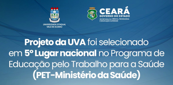 O Projeto da Universidade Estadual Vale do Acaraú (UVA) intitulado “PET Saúde – Gestão e Assistência – Secretaria Municipal de Saúde de Sobral” foi selecionado em 5º lugar nacional no Programa de Educação pelo Trabalho para a Saúde (PET – Saúde: Gestão e Assistência – 2022/ 2023), conforme a Portaria nº 5, da Secretaria de Gestão do Trabalho e da Educação na Saúde, divulgada no Diário Oficial da União do dia 9 de junho de 2022 (acesse aqui).