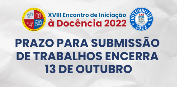 XVIII Encontro de Iniciação à Docência: prazo para submissão de trabalhos encerra 13 de outubro
