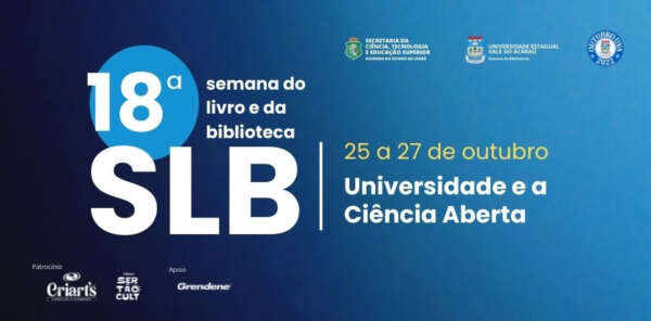 O Sistema de Bibliotecas da Universidade Estadual Vale do Acaraú (UVA) realiza, de 25 a 27 de outubro, a 18ª edição da Semana do Livro e da Biblioteca (SLB). Para este ano o tema escolhido foi “Universidade e a Ciência Aberta”, levando em consideração o cenário atual de comunicação científica para soluções práticas na sociedade da informação, tecnologia e inovação. Essa é mais uma atividade da programação oficial do Outubro UVA 2022.