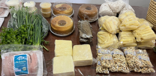 O cardápio completo com esses e outros alimentos, como filé de tilápia e galinha caipira, pode ser verificado no aplicativo, e alguns dos produtos estão disponíveis para entrega imediata na sala da IEES, como a Cajuína Clariana, o doce de caju e a castanha.