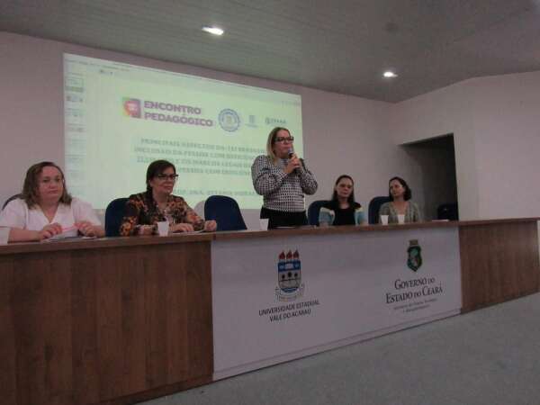 Com o tema “Educação Inclusiva”, a Universidade Estadual Vale do Acaraú (UVA) realizou, na manhã desta terça-feira, 24 de outubro, o Encontro Pedagógico 2023, que reuniu professores da Universidade. Realizado no auditório do Centro de Ciências da Saúde (CCS), no campus Derby, o evento foi organizado pela Pró-Reitoria de Gestão de Pessoas (PROGEP) juntamente com a Pró-Reitoria de Graduação (PROGRAD). A mesa de abertura contou com a presença da reitora da UVA, professora Izabelle Mont’Alverne, da pró-reitora de Graduação, professora Jônia Tírcia Albuquerque, a pró-reitora Adjunta de Graduação, professora Kelvya Moreira, a pró-reitora de Gestão de Pessoas, professora Betania Moraes, e a pró-reitora Adjunta de Gestão de Pessoas, Graça Guimarães.