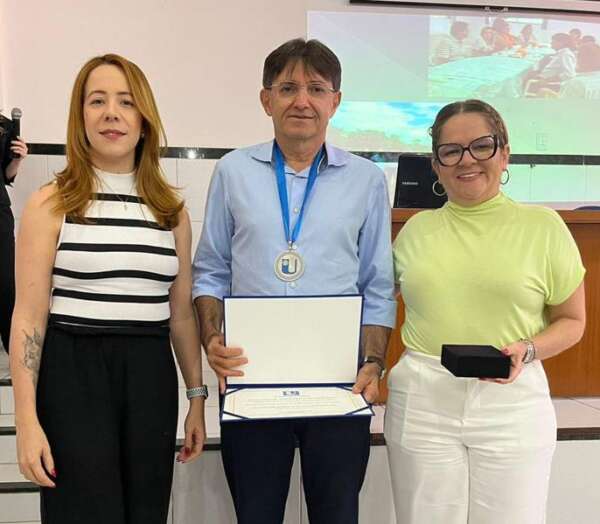 Ao final da solenidade, a reitora Izabelle Mont’Alverne entregou ao docente e ex-reitor da UVA o título de Associado Honorário da Associação Brasileira dos Reitores das Universidades Estaduais e Municipais – ABRUEM, homenagem concedida a ex-reitores de instituições de ensino superior.