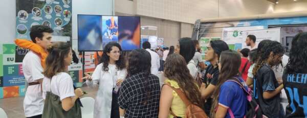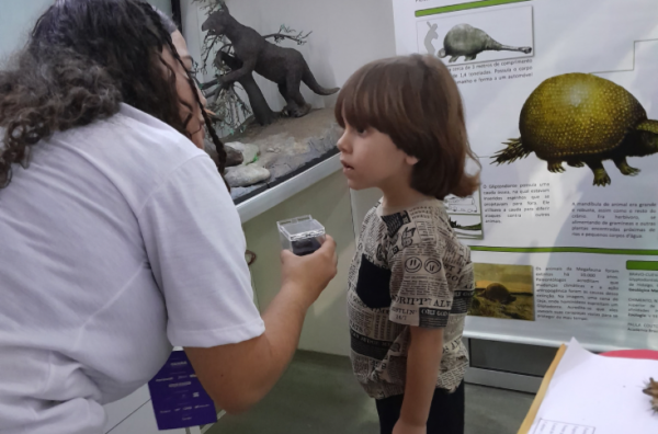 “Participar da feira do conhecimento foi uma experiência muito empolgante, pela oportunidade de falar sobre paleontologia, é muito legal falar sobre o nosso patrimônio aqui do norte do Ceará e divulgar a importância que é a sua conservação”, comenta Gustavo Batista, bolsista do Laboratório de Paleontologia.
