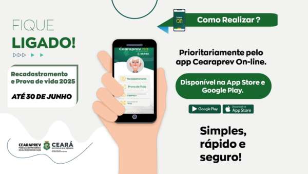 A Fundação de Previdência Social do Estado do Ceará (Cearaprev) deu início ao Recadastramento e a Prova de Vida 2025, conforme estabelecido pela Lei Estadual n°14.327, de 20 de abril de 2009, Decreto n°34.135, de 02 de julho de 2021, e