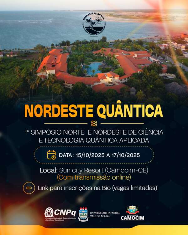 Entre os dias 15 e 17 de outubro, acontecerá o 1º Simpósio Norte e Nordeste de Ciência e Tecnologia Quântica Aplicada (Nordeste Quântica), em Camocim, no Sun City Resort.