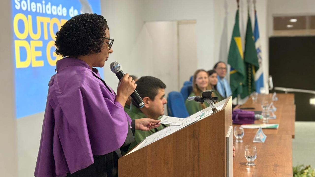 Encerrando a programação, na sexta-feira (17/04), os novos profissionais dos cursos de Ciências Sociais, História, Geografia, Enfermagem e Educação Física participaram da solenidade de colação de grau, presidida pela pró-reitora adjunta da PROGRAD, professora Elisalene Santos, com a presença de professores, gestores acadêmicos, servidores e familiares.